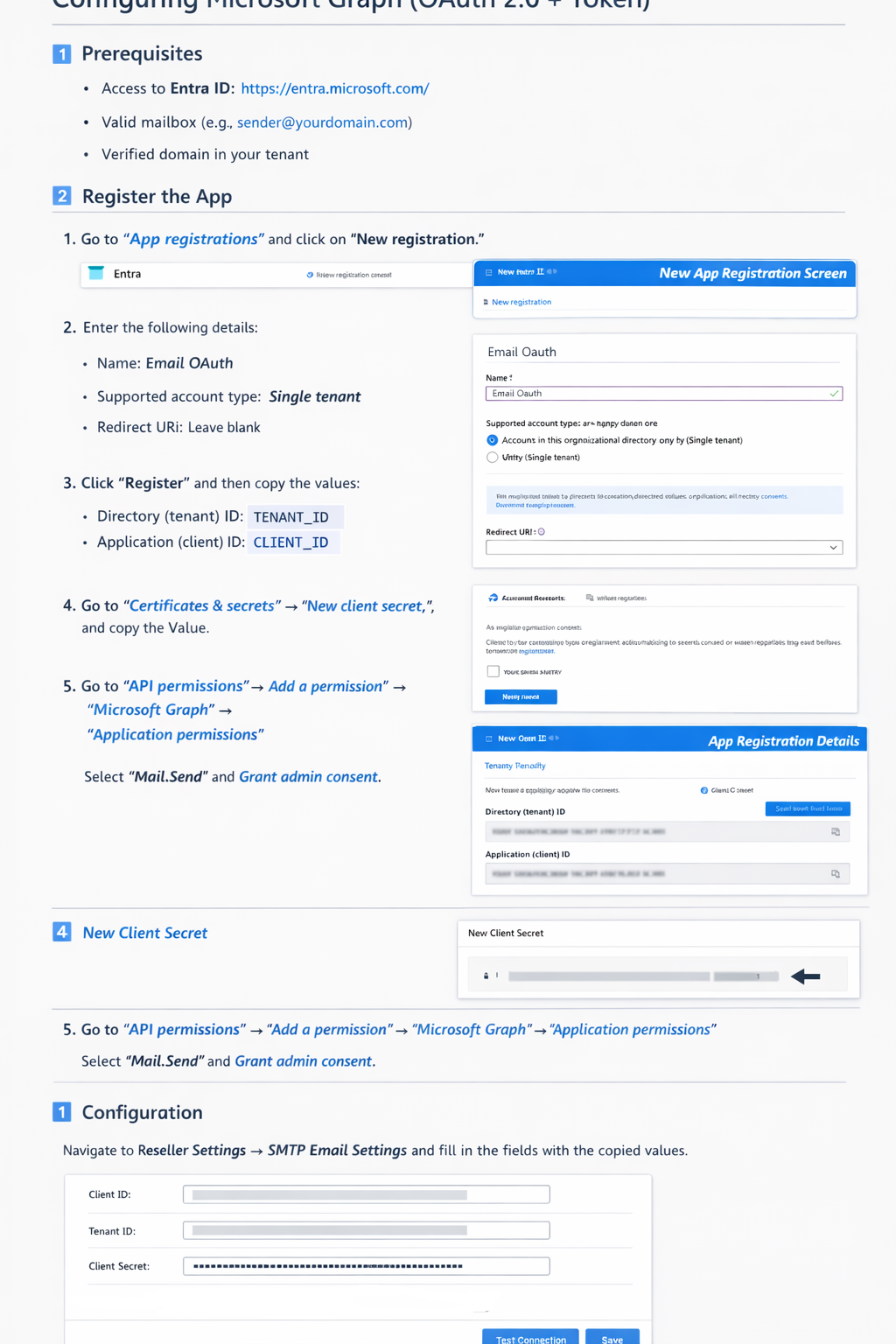 Microsoft has deprecated basic SMTP authentication for most tenants. OAuth 2.0 via Microsoft Graph is now the recommended and more secure approach. This setup allows applications to send email without storing mailbox passwords.
