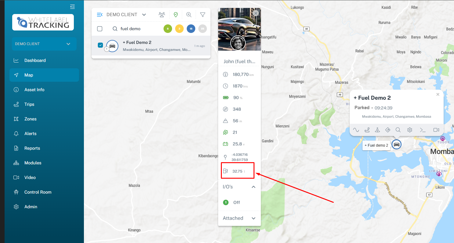 Fuel Level (e.g., 32.75 L) → This is the current fuel in the tank